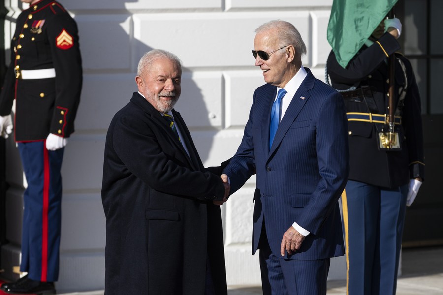 10 февраля, Вашингтон. Президент США Джозеф Байден приветствует своего бразильского коллегу Луиса Инасиу Лулу да Силву. /Фото: Синьхуа/
