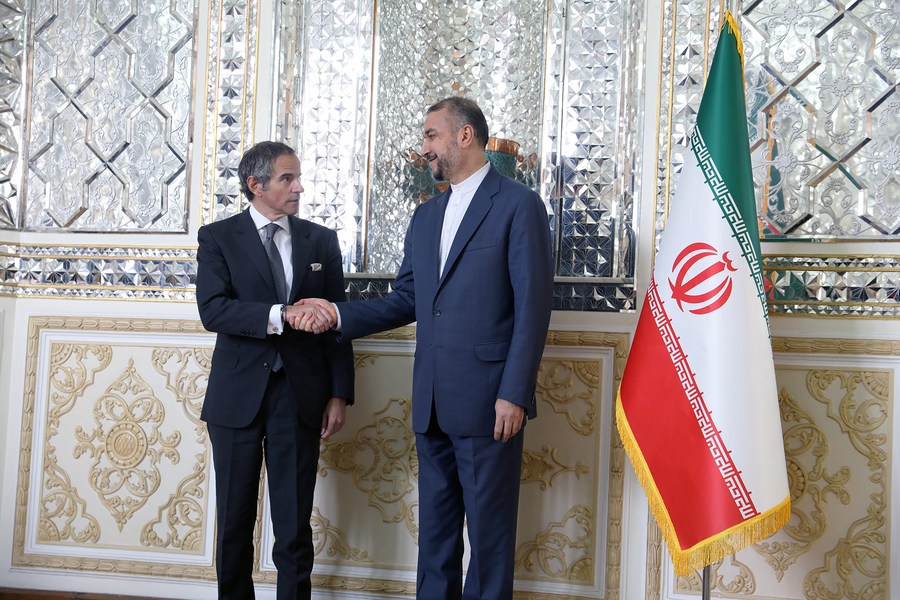 4 марта, Тегеран. Министр иностранных дел Ирана Хосейн Амир Абдоллахиян /справа/ на встрече с генеральным директором МАГАТЭ Рафаэлем Гросси. /Фото: МИД ИРИ/Синьхуа/