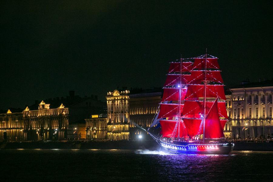 Санкт-Петербург, 25 июня /Синьхуа/ -- В ночь с субботы на воскресенье в Санкт-Петербурге состоялся грандиозный праздник выпускников школ "Алые паруса", на который собрались десятки тысяч гостей из России и зарубежья.