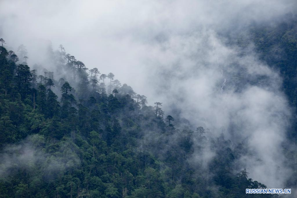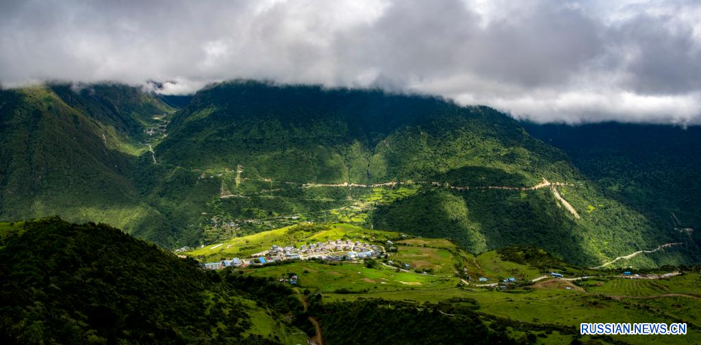 На этом снимке, сделанном 29 июля 2023 года, изображен пейзаж в долине уезда Кона в городе Шаньнань Тибетского автономного района на юго-западе Китая. (Синьхуа/Цзян Фань)