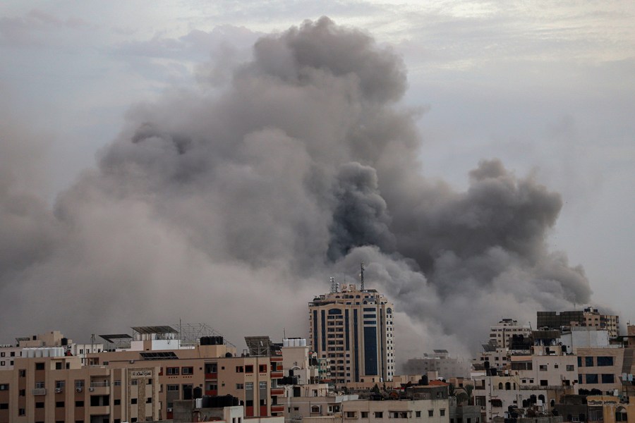 9 октября, Газа. Дым над сектором Газа после израильского авиаудара. /Фото: Синьхуа/