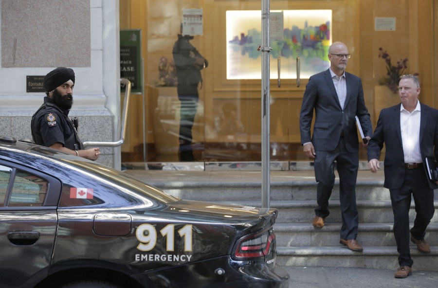 21 сентября, Ванкувер, Канада. Полицейский возле здания, в котором располагается генеральное консульство Индии. /Фото: Синьхуа/