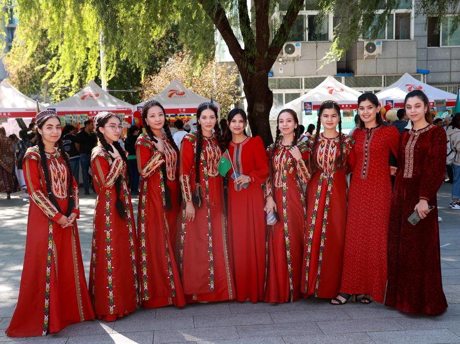 1 октября 2023 года, студентки из Туркменистана на 7-м международном культурном фестивале Китайского нефтяного университета /Пекин/. /Фото: Синьхуа/