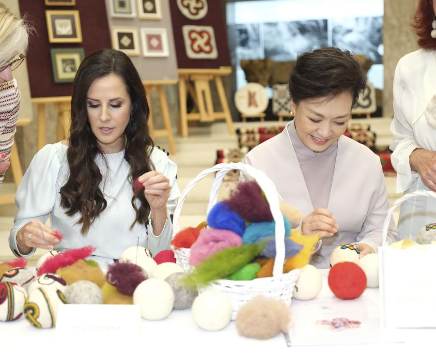 Подчеркнув сходство между китайской и сербской культурами вышивки, она предложила наладить взаимное обучение и поощрять молодых людей из обеих стран активно участвовать в передаче традиционных ремесел из поколения в поколение. Первые леди также с энтузиазмом приняли участие в изготовлении сербских войлочных шариков из шерсти.