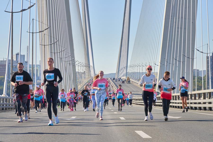 Владивосток, 29 сентября /Синьхуа/ -- В субботу во Владивостоке, административном центре Приморского края России, состоялся международный марафон "Мосты Владивостока", который собрал 4,5 тыс. человек, влюбленных в бег.