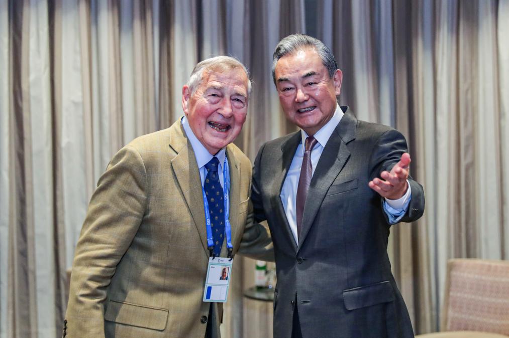 14 февраля, Мюнхен, Германия. Член Политбюро ЦК КПК, министр иностранных дел КНР Ван И на встрече с профессором Гарвардского Университета Грэхамом Аллисоном в кулуарах Мюнхенской конференции по безопасности. /Фото: Синьхуа/