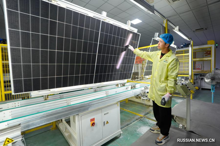 20 февраля 2025 года, сотрудник проверяет фотоэлектрическую панель в промышленном парке в уезде Тунсинь города Учжун Нинся-Хуэйского автономного района на северо-западе Китая. /Фото: Синьхуа/