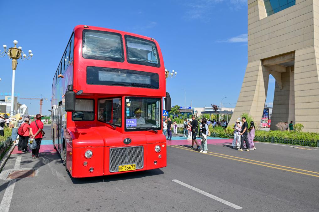 26 июля 2024 года, туристический автобус остановился на территории китайской части Китайско-казахстанского международного центра приграничного сотрудничества "Хоргос" в одноименном городе Синьцзян-Уйгурского автономного района /Северо-Западный Китай/. /Фото: Синьхуа/