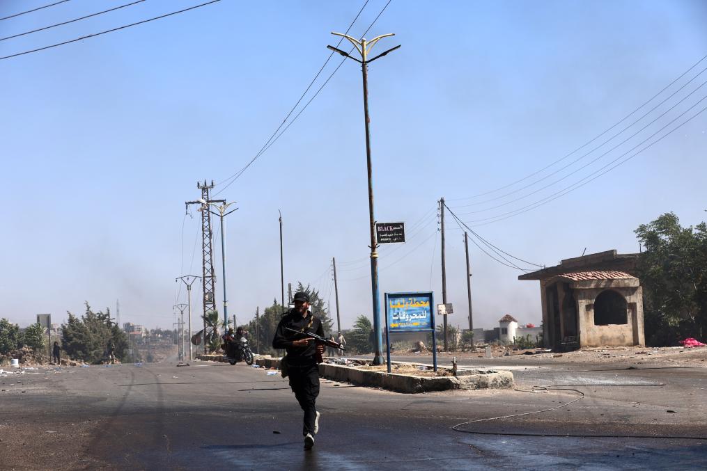 18 июля, Вольга, Сирия. Боец-бедуин перебегает дорогу в городе Вольга в западной части провинции Эс-Сувейда, расположенной на юге Сирии. /Фото: Синьхуа/