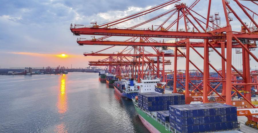 16 июня, Таншань, провинция Хэбэй. Вид на контейнерный терминал порта Таншань. /Фото: Синьхуа/