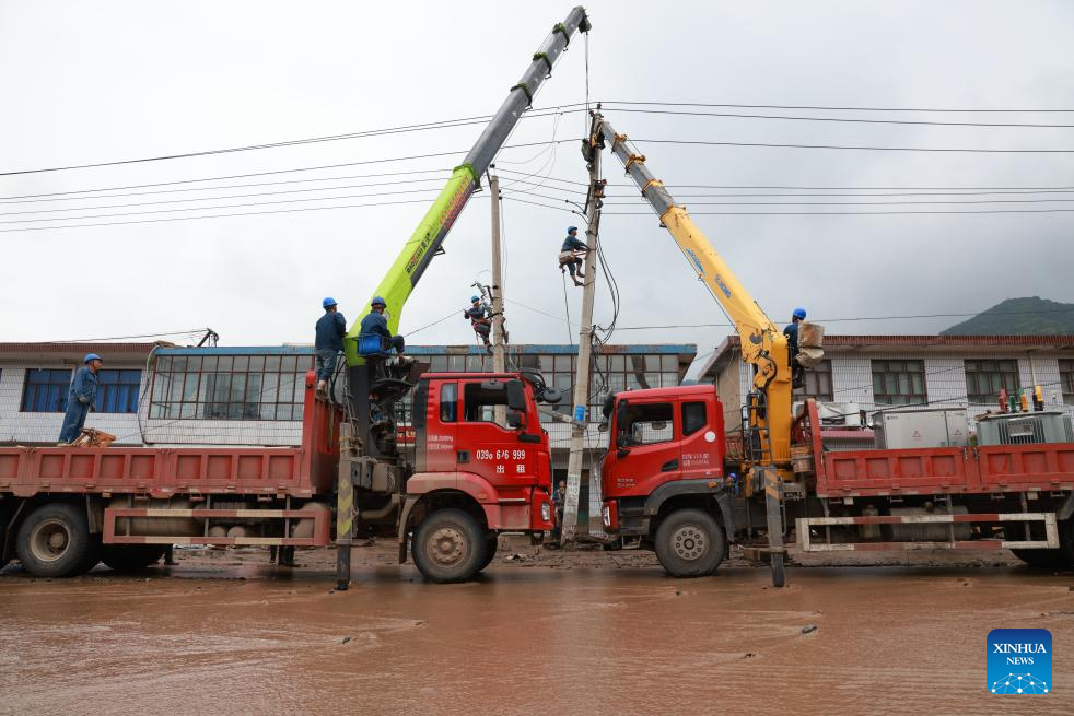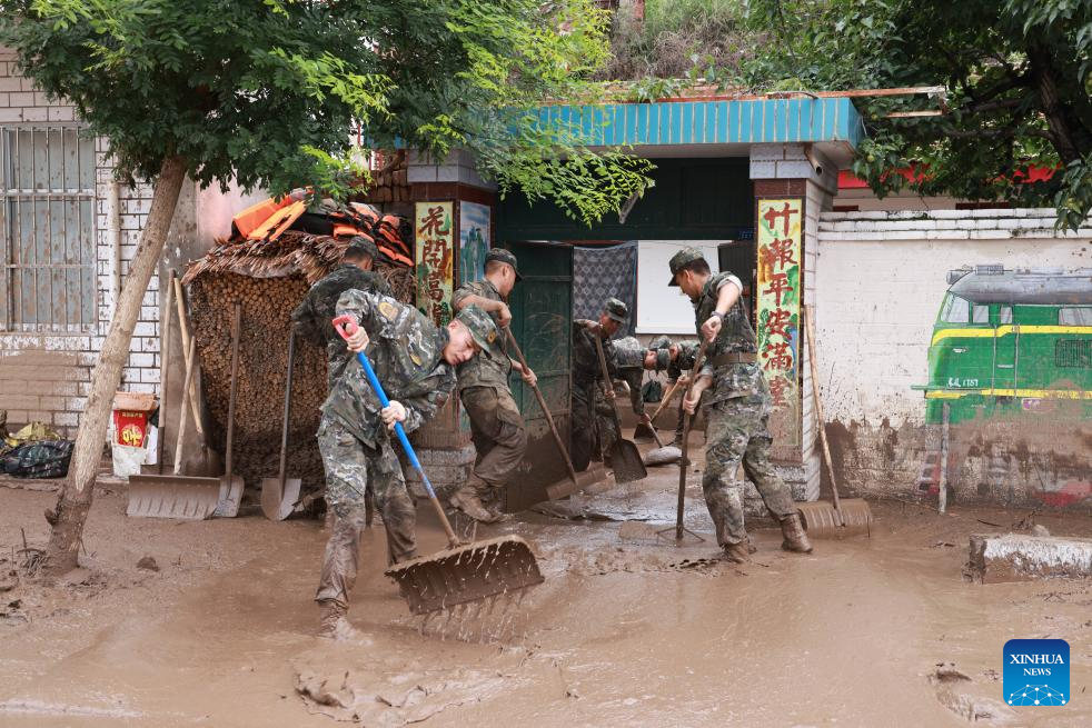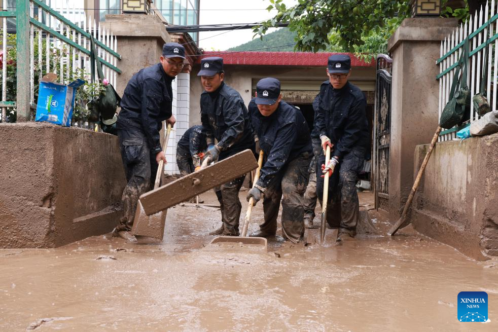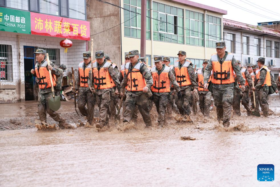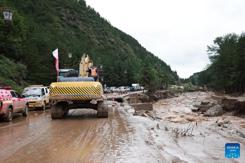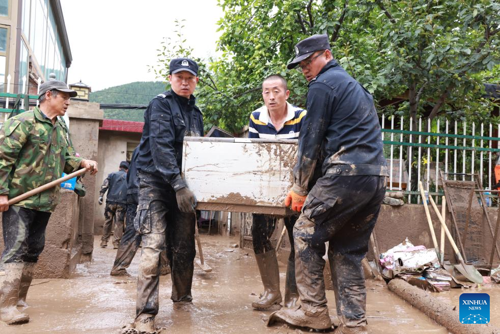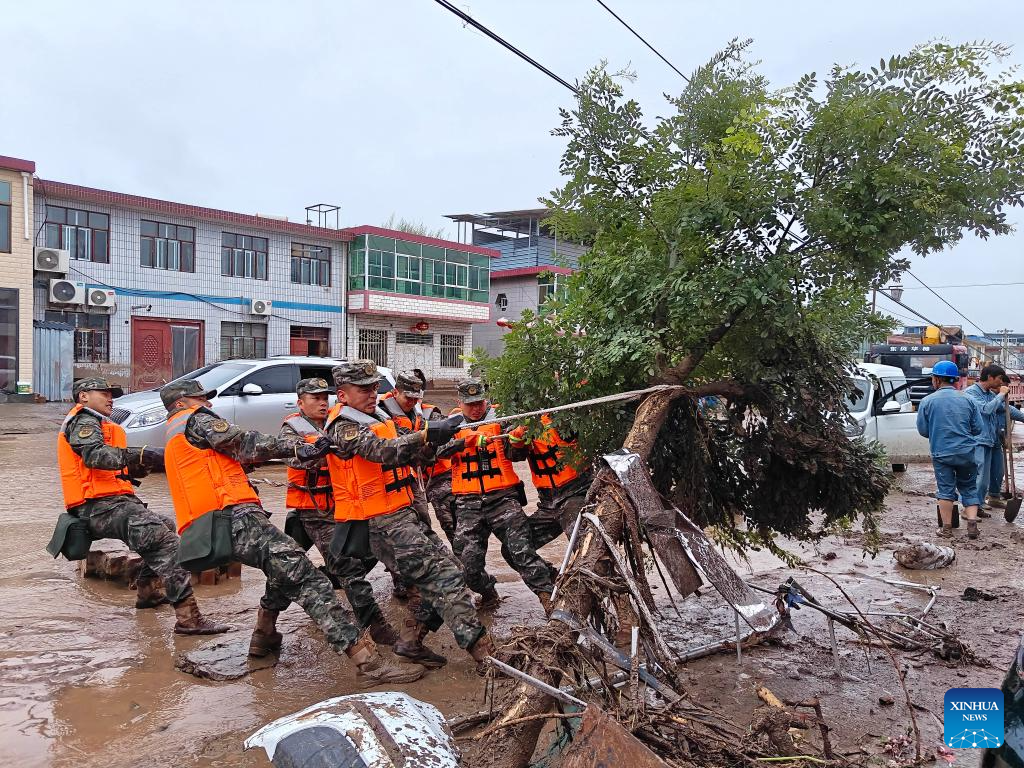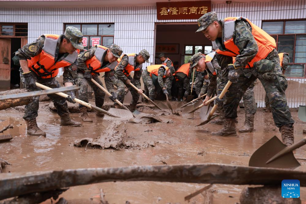 Около 14:00 в пятницу корреспонденты информагентства "Синьхуа" увидели, что паводковая вода, смешанная с вырванными с корнем деревьями, перекрыла дороги возле начальной школы Синлун в поселке Чэнгуань, а на некоторых участках образовались отложения грязи глубиной более 30 см. Вдоль обочины дороги находилось множество поврежденных автомобилей, а мебель с первых этажей некоторых домов была сметена до самых порогов.