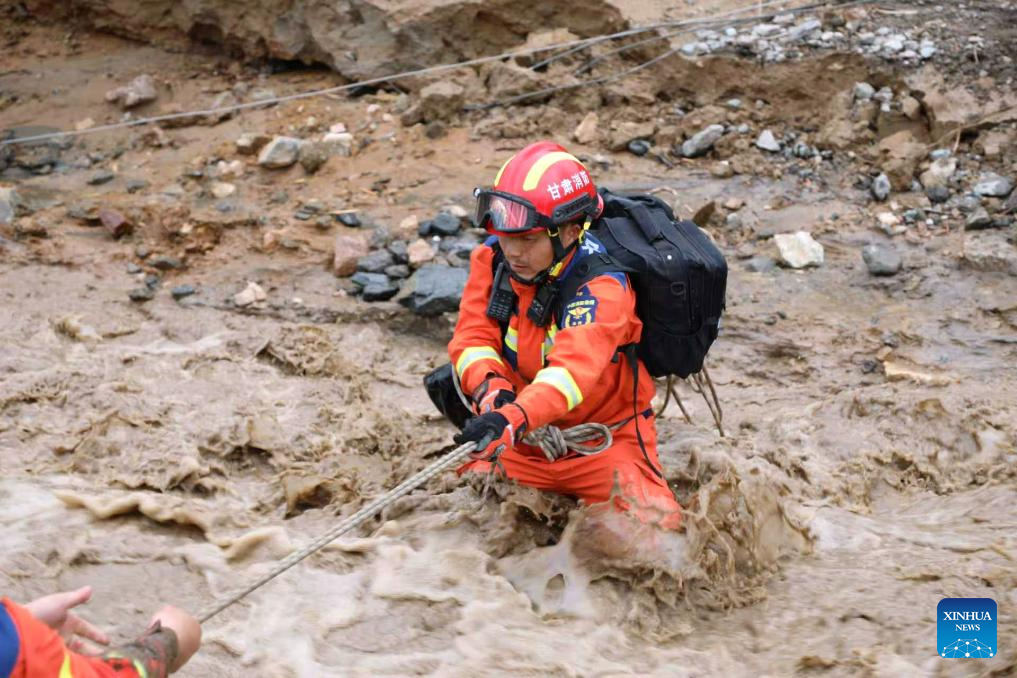 Ланьчжоу, 8 августа /Синьхуа/ -- Ведутся поисково-спасательные работы после того, как продолжающиеся проливные дожди вызвали сход горных потоков в уезде Юйчжун провинции Ганьсу на северо-западе Китая, в результате чего по состоянию на 15:30 пятницы 10 человек погибли и 33 пропали без вести, сообщили местные власти.