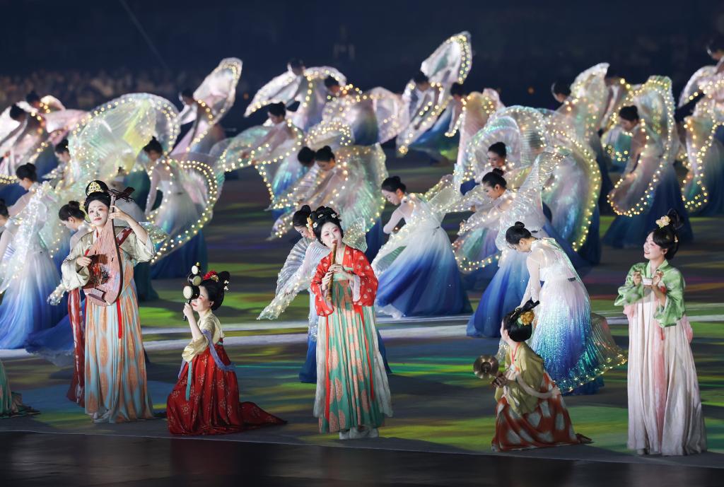 Под "крышей Тяньфу" -- крупнейшей в Азии единой деревянной конструкцией, простирающейся на 430 метров, -- около 10 тыс. зрителей приветствовали бурными аплодисментами Шэнь Ицинь, которая официально объявила Игры открытыми. На церемонии также присутствовали президент Международной ассоциации Всемирных игр /IWGA/ Хосе Перурена и член исполнительного комитета Международного олимпийского комитета /МОК/ Ли Линвэй.