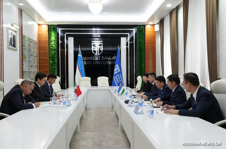 30 мая 2025 года, представители администраций Китайского политико-юридического университета и Ташкентского государственного юридического университета проводят переговоры в Ташкенте, столице Узбекистана. На встрече две стороны подписали меморандум о взаимопонимании. /Фото: Синьхуа/