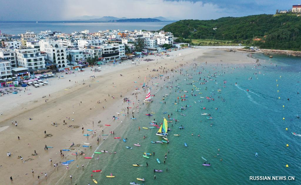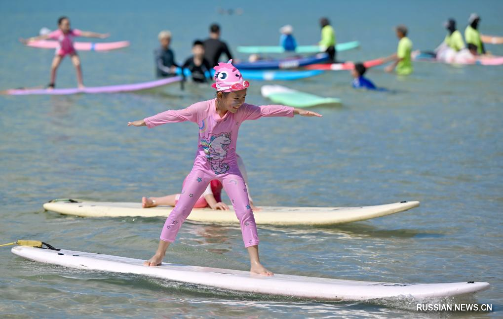 Туристы приезжают в г. Санья, чтобы научиться серфингу