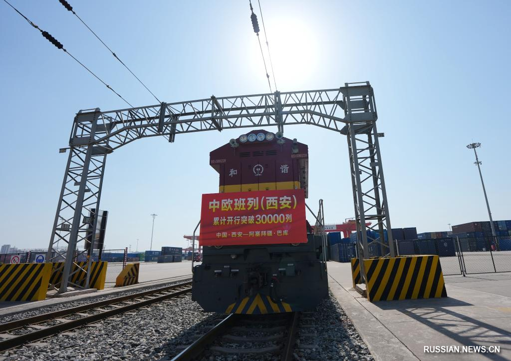 Состав под номером X9043, груженный 55 контейнерами с фотоэлектрическими модулями, в среду утром в 09:50 покинул станцию международного порта Сианя и взял курс на запад, в Баку, столицу Азербайджана, став 30 000-м товарным поездом, отправленным из города с 2013 года по маршруту Китай-Европа.