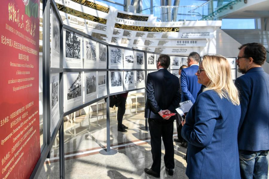 Минск, 15 августа /Синьхуа/ -- В Зале Победы Белорусского государственного музея истории Великой Отечественной войны в пятницу состоялось открытие фотовыставки под названием "Помня о прошлом, созидать будущее", посвященной 80-летию победы в Войне сопротивления китайского народа японским захватчикам и победе в Мировой антифашистской войне. На церемонии присутствовали более 250 представителей правительства и общественных организаций Беларуси.