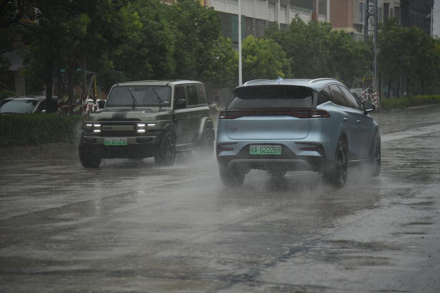 14 августа, Чаочжоу, Китай. Автомобили под дождем на одной из дорог в поселке Цяньдун городского округа Чаочжоу в провинции Гуандун /Южный Китай/. /Фото: Синьхуа/