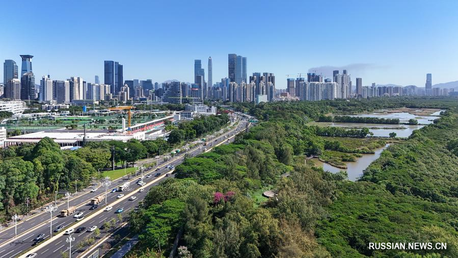 На снимке, сделанном 29 ноября 2024 года с помощью дрона, запечатлены покрытые мангровыми деревьями водно-болотные угодья в районе Футянь города Шэньчжэнь /пров. Гуандун, Южный Китай/. /Фото: Синьхуа/