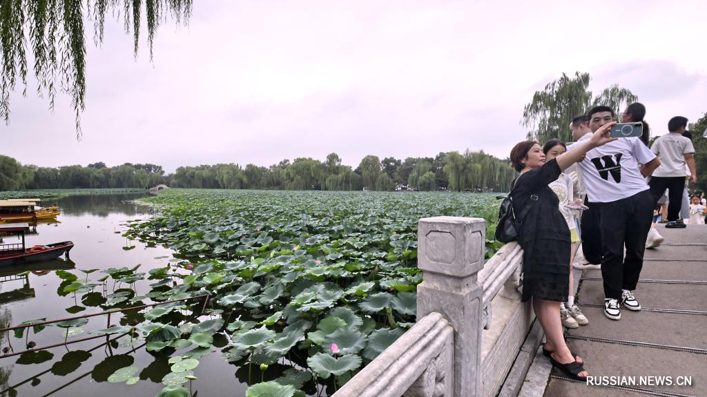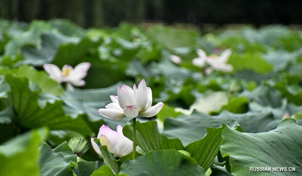 Цветущие лотосы в пекинском парке Юаньминъюань