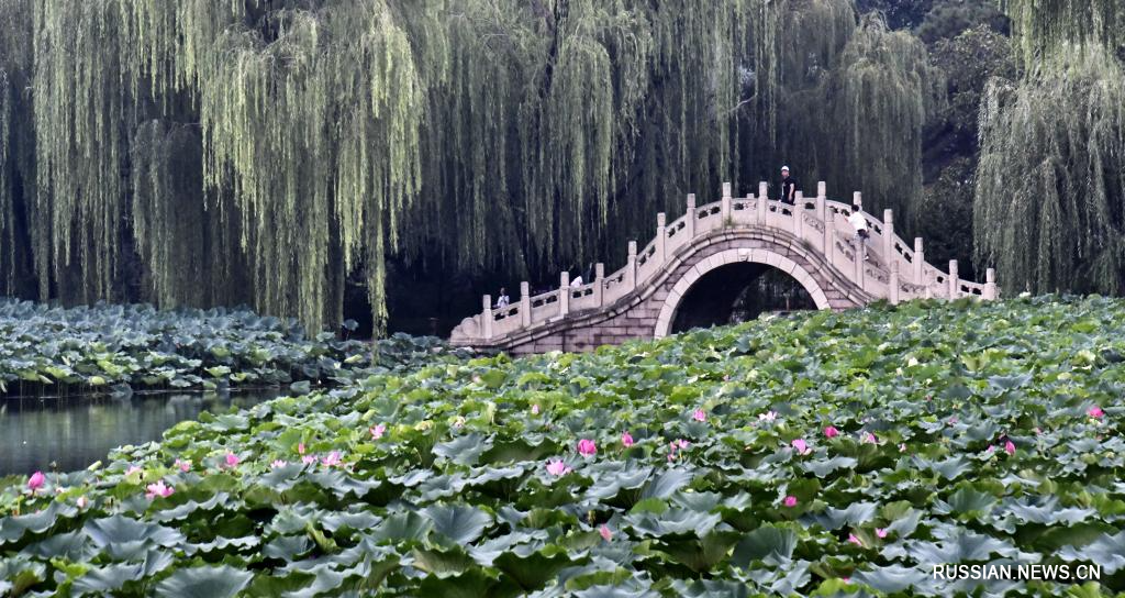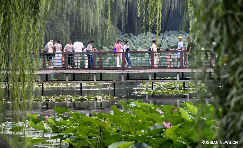 Пекин, 23 августа /Синьхуа/ -- В начале осени в парке Юаньминъюань в Пекине зона цветущих лотосов привлекает к себе многочисленных посетителей.