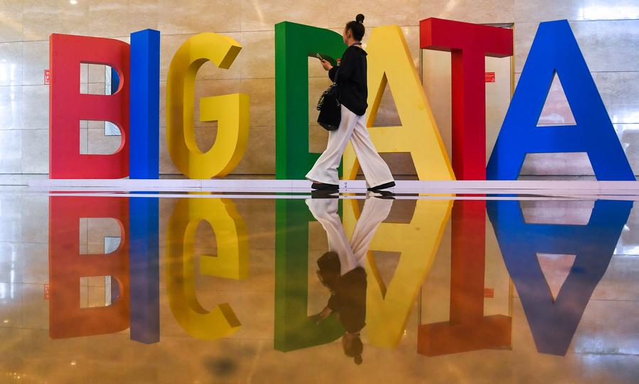 28 августа 2025 года, женщина проходит мимо инсталляции, посвященной проведению Китайского международного ЭКСПО индустрии больших данных 2025 года в городе Гуйян, административном центре провинции Гуйчжоу на юго-западе Китая. /Фото: Синьхуа/