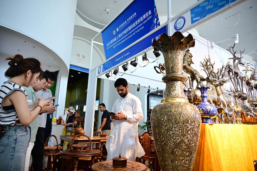 18 июля, Циндао, Китай. Участники Международной выставки инвестиций и торговли ШОС-2025 в международном выставочном центре "Жемчужина ШОС" города Циндао /провинция Шаньдун, Восточный Китай/. /Фото: Синьхуа/