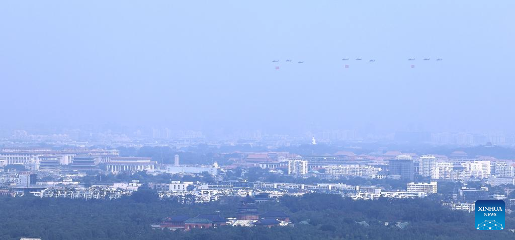 /День Победы/ Торжественный марш по случаю Дня Победы в Китае начался с пролета эскадрильи с флагами над площадью Тяньаньмэнь