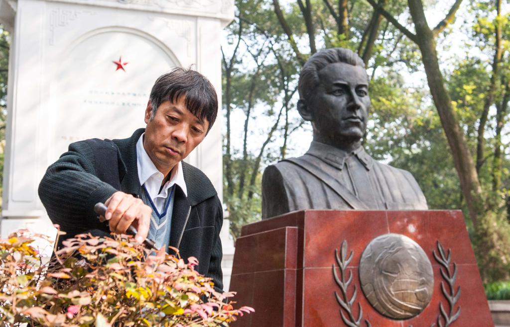 19 ноября 2014 года, Ваньчжоу, Китай. Китаец Вэй Инсян ухаживает за могилой Григория Кулишенко. /Фото: Синьхуа/