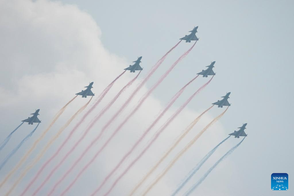 Пекин, 3 сентября /Синьхуа/ -- Семь учебных самолетов "Цзянь-10" в среду пролетели над площадью Тяньаньмэнь, что ознаменовало собой завершение парада в честь Дня Победы.