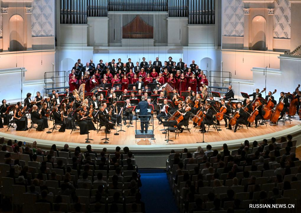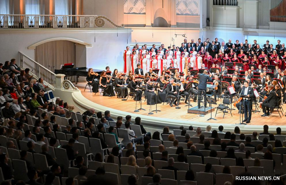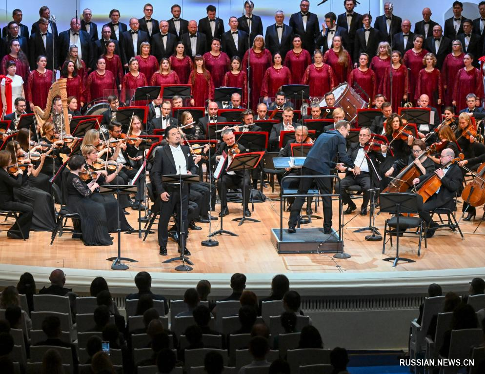 Москва, 5 сентября /Синьхуа/ -- "Защитим Родину, защитим Хуанхэ, защитим север Китая, защитим весь Китай!" -- этот торжественный и вдохновляющий призыв в исполнении хора и оркестра прозвучал в среду вечером в Концертном зале имени П. И. Чайковского в центре Москвы. По случаю 80-летия Победы в Войне сопротивления китайского народа японским захватчикам и окончания Второй мировой войны, которые отмечались в Китае и России 3 сентября, состоялся гала-концерт. Музыканты Государственной академической симфонической капеллы России и хора "Имин" из города Гуанчжоу /провинция Гуандун, Южный Китай/ исполнили одну из самых известных патриотических композиций Китая -- "Кантату о реке Хуанхэ", написанную в 1939 году композитором Сянь Синхаем.