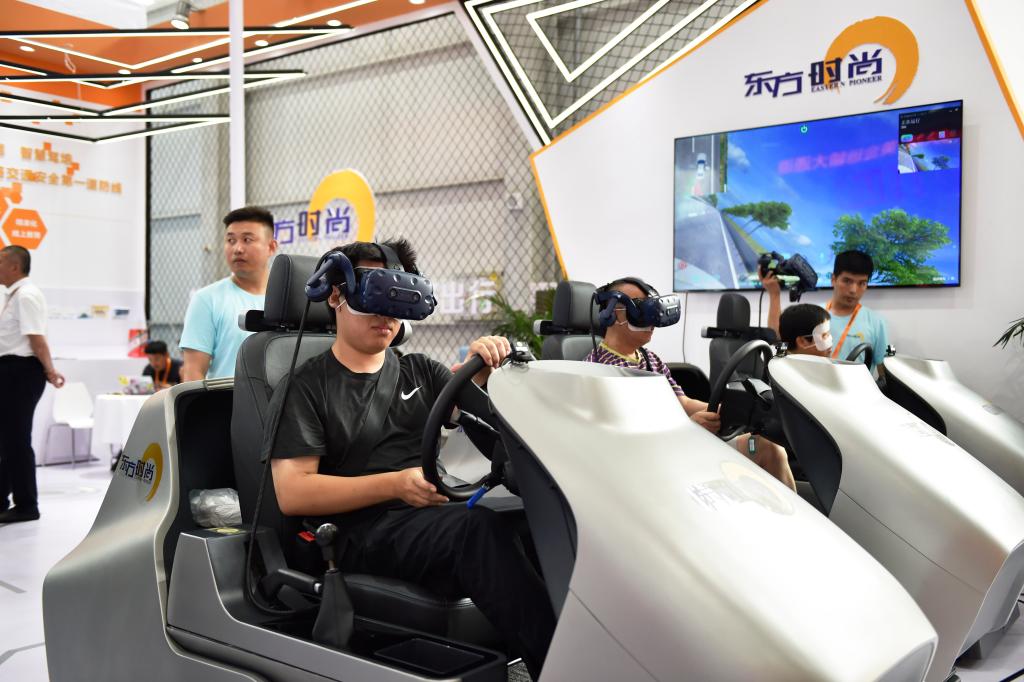 5 сентября 2023 года, Пекин. Посетители знакомятся с симуляторами вождения с технологией виртуальной реальности на Китайской международной ярмарке торговли услугами. /Фото: Синьхуа/