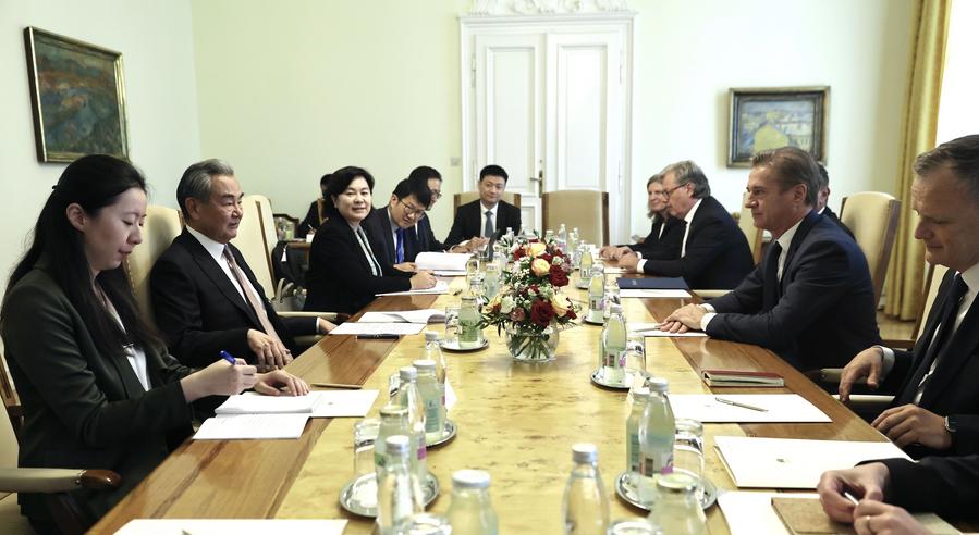 13 сентября, Любляна. Премьер-министр Словении Роберт Голоб встречается с членом Политбюро ЦК КПК, министром иностранных дел КНР Ван И. /Фото: Синьхуа/