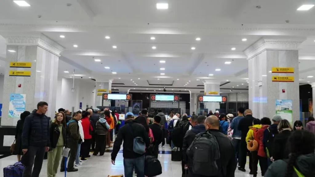 15 сентября 2025 года, российские туристы, проходящие таможенное оформление на КПП Маньчжоули.