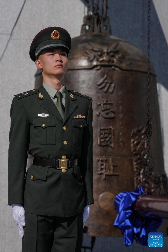 Ровно в 09:18 утра 14 представителей из различных слоев общества 14 раз ударили в огромный колокол, что символизирует 14 лет мужественной борьбы китайского народа против японских захватчиков.