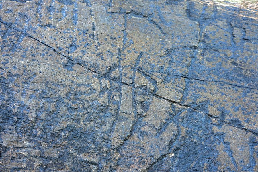 25 июля 2025 года, на фото запечатлена высеченная на скале гравировка, датируемая более чем 2000 лет назад, временем династии Цинь, найденная на берегах озера Гьяринг-Цо в уезде Мадо северо-западной китайской провинции Цинхай. /Фото: Синьхуа/