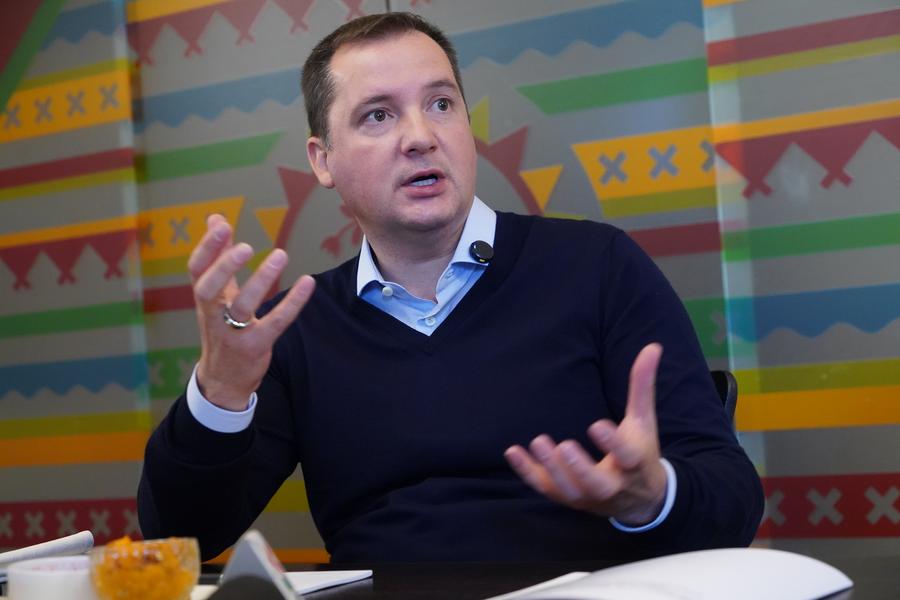 19 сентября. Архангельск, Россия. Губернатор Архангельской области Александр Цыбульский на встрече с иностранными журналистами. /Фото: Синьхуа/