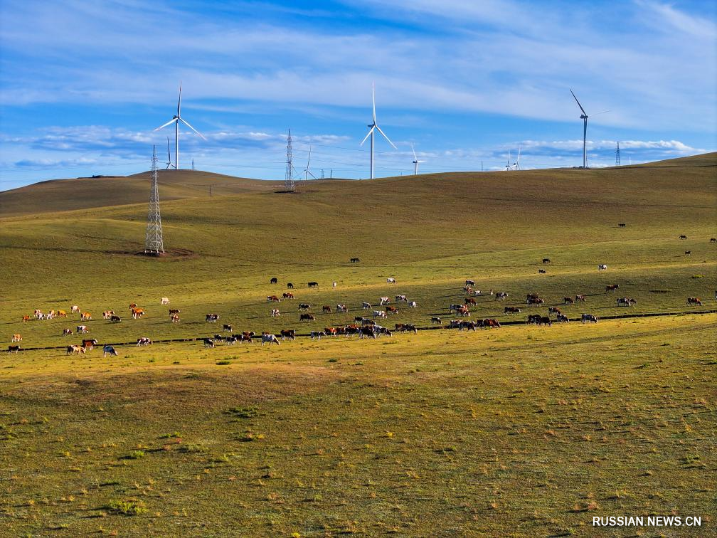 Тунляо /АР Внутренняя Монголия/, 21 сентября /Синьхуа/ -- В последнее время с понижением температуры трава в степи в Чжалутэском хошуне, расположенном в северо-западной части города Тунляо автономного района Внутренняя Монголия /Северный Китай/, постепенно желтеет, что создает впечатляющий осенний пейзаж.