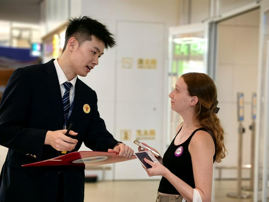 26 сентября 2025 года, сотрудник проверяет информацию у пассажирки. /Фото предоставлено Синьцзянским филиалом авиакомпании China Southern Airlines/