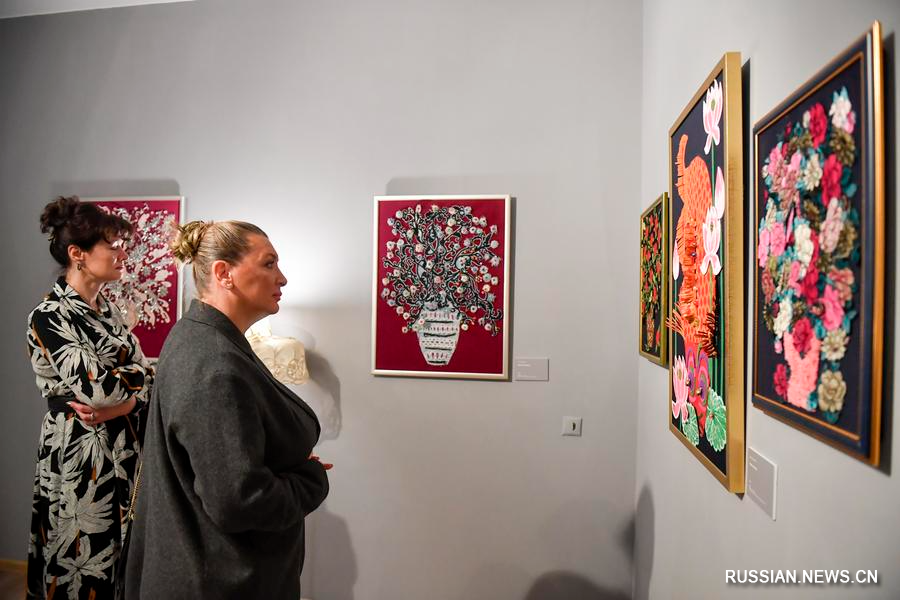 Москва, 1 октября /Синьхуа/ -- Выставка "Ткань судьбы", посвященная традициям декоративно-прикладного искусства Китая и России, открылась во вторник в московском выставочном центре "Галерея на Мосфильме". В экспозиции представлены произведения трех российских художниц-декораторов, среди которых заслуженный деятель искусств РФ, специалист по культуре Китая Ирина Захарова, мать официального представителя МИД РФ Марии Захаровой.
