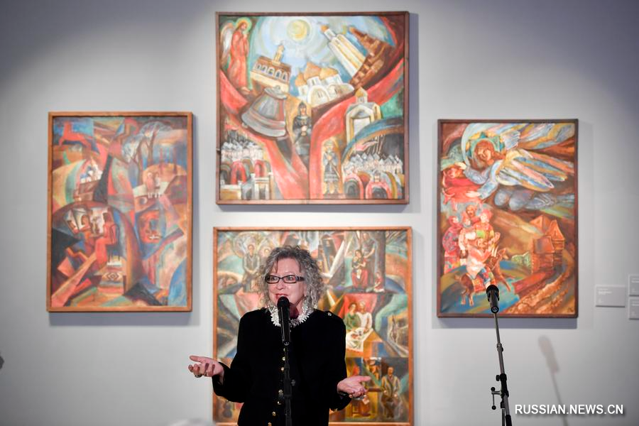 30 сентября, Москва. Ирина Захарова выступает на церемонии открытия художественной выставки "Ткань судьбы" в "Галерее на Мосфильме". /Фото: Синьхуа/