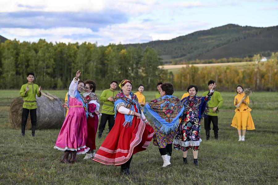 15 сентября 2025 года, люди на праздничных мероприятиях, посвященных сбору богатого урожая, в Эньхэ-Русской национальной волости города Эргуна /Аргунь/ автономного района Внутренняя Монголия /Северный Китай/. /Фото: Синьхуа/