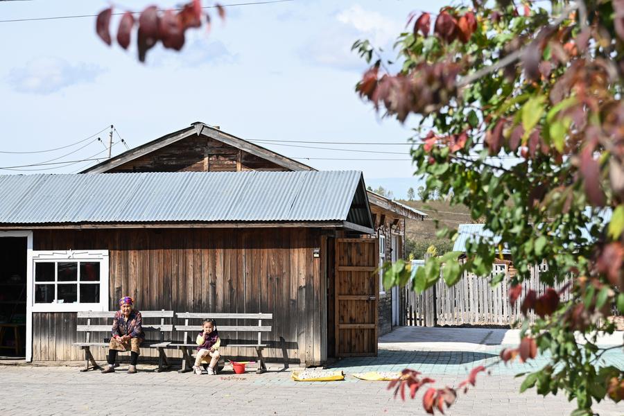 18 сентября 2025 года, местные жители отдыхают у избы "Мукэлэн" в деревне Эньхэ Эньхэ-Русской национальной волости города Эргуна /Аргунь/ автономного района Внутренняя Монголия /Северный Китай/. /Фото: Синьхуа/