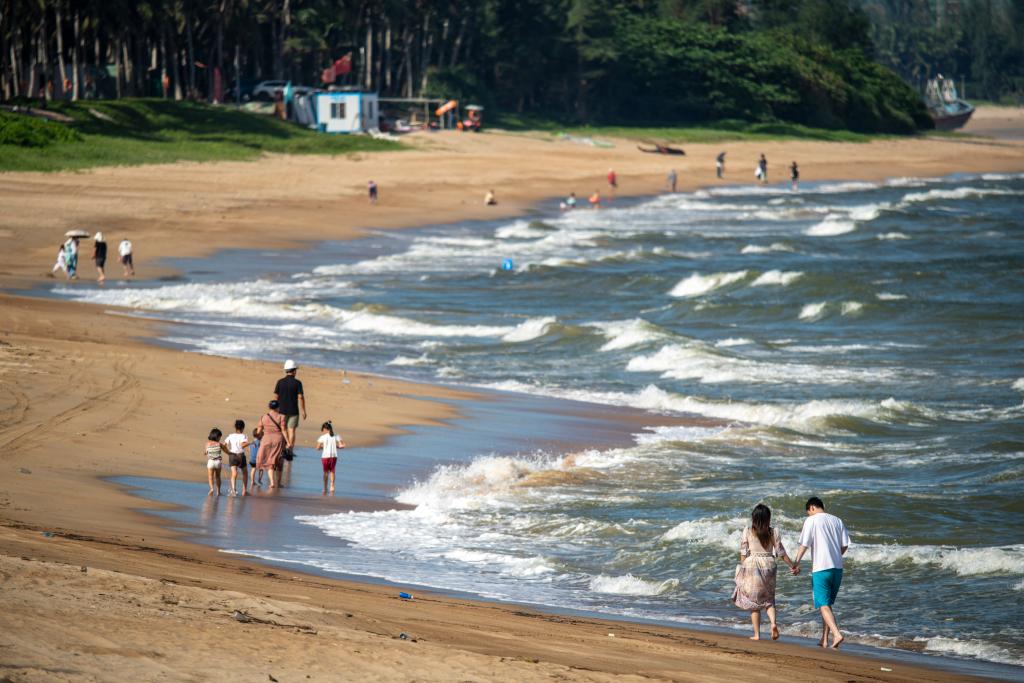 8 октября 2025 года, туристы отдыхают на берегу моря в городе Цюнхай провинции Хайнань /Южный Китай/. /Фото: Синьхуа/