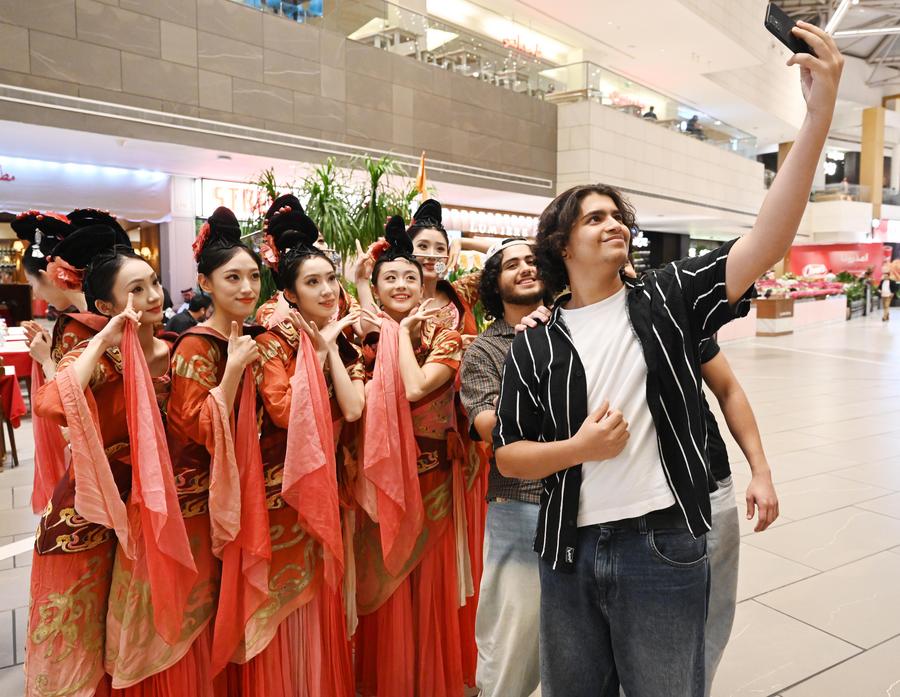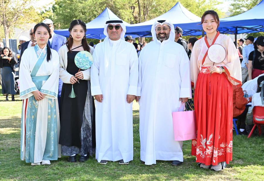 9 марта 2024 года, мухафаза Асама, Кувейт. Кувейтцы фотографируются с женщинами в традиционной китайской одежде во время Фестиваля китайской культуры и кухни. /Фото: Синьхуа/