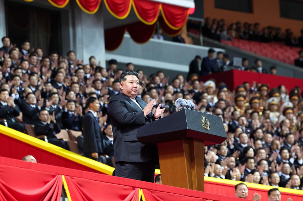 9 октября, Пхеньян. Генеральный секретарь Трудовой партии Кореи /ТПК/, председатель государственных дел КНДР Ким Чен Ын на торжественном собрании по случаю 80-й годовщины основания ТПК. /Фото: Синьхуа/