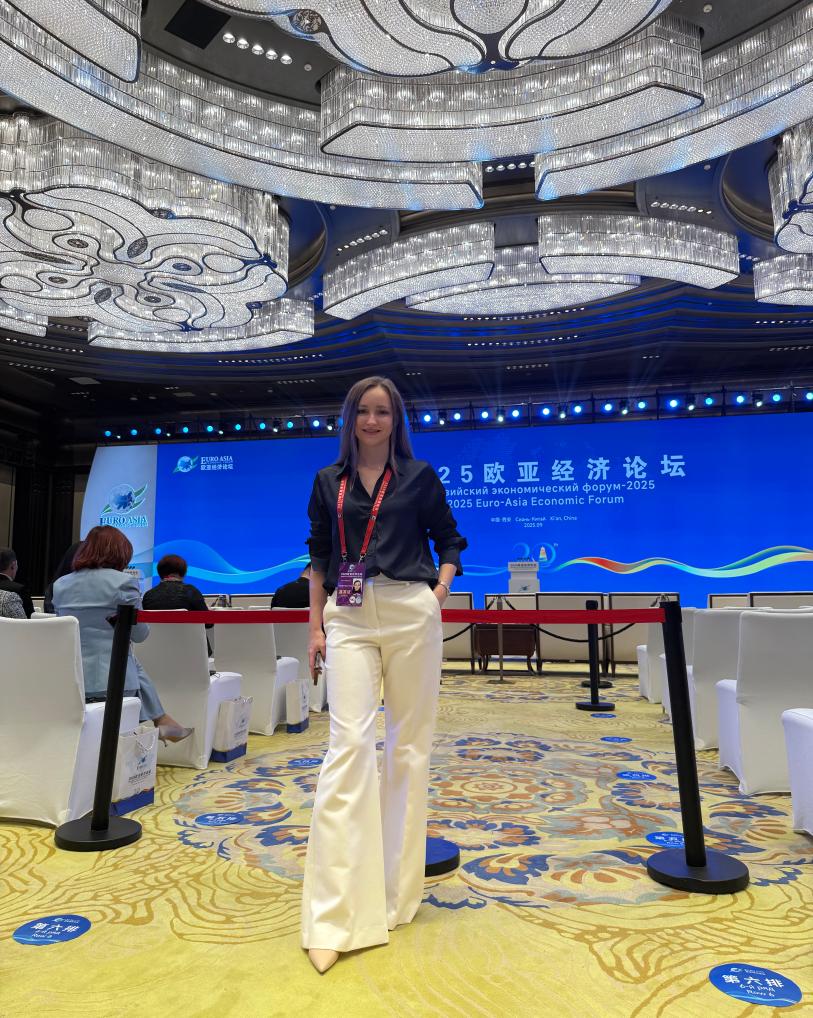 Сентябрь 2025 года, россиянка Анна Самодолова участвует в одном из подфорумов Евразийского экономического форума-2025, где она поделилась своим взглядом на цифровую экономику. /Фото представлено интервьюируемой/