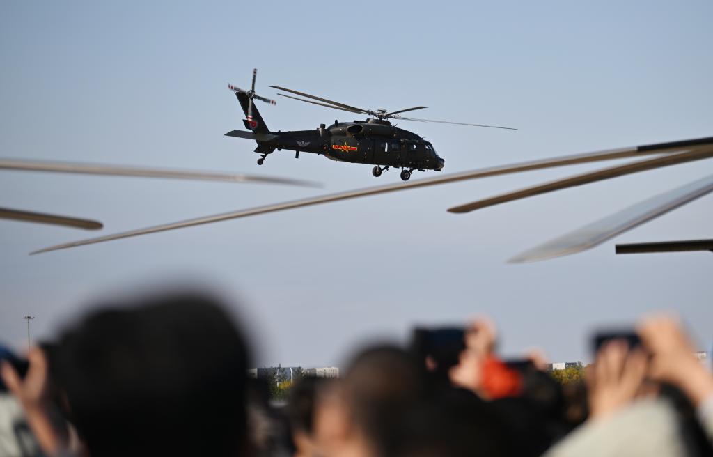 18 октября 2025 года, китайские вертолеты Чжи-20 /Z-20/ выполняют демонстрационные полеты на 7-й Китайской международной выставке вертолетов в городе Тяньцзинь на севере Китая. /Фото: Синьхуа/