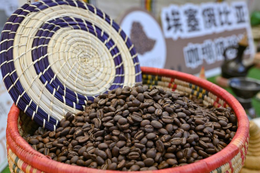 17 октября, Хайкоу. Эфиопские кофейные зерна на 3-й Хайнаньской международной выставке цепочек поставок тропических продуктов питания. /Фото:Синьхуа/