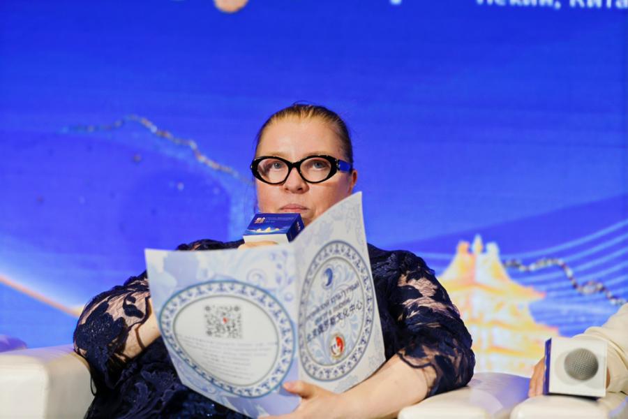 24 октября 2025 года, руководитель Российского культурного центра в Пекине Татьяна Уржумцева выступает на мероприятии. /Фото предоставлено интервьюируемым/